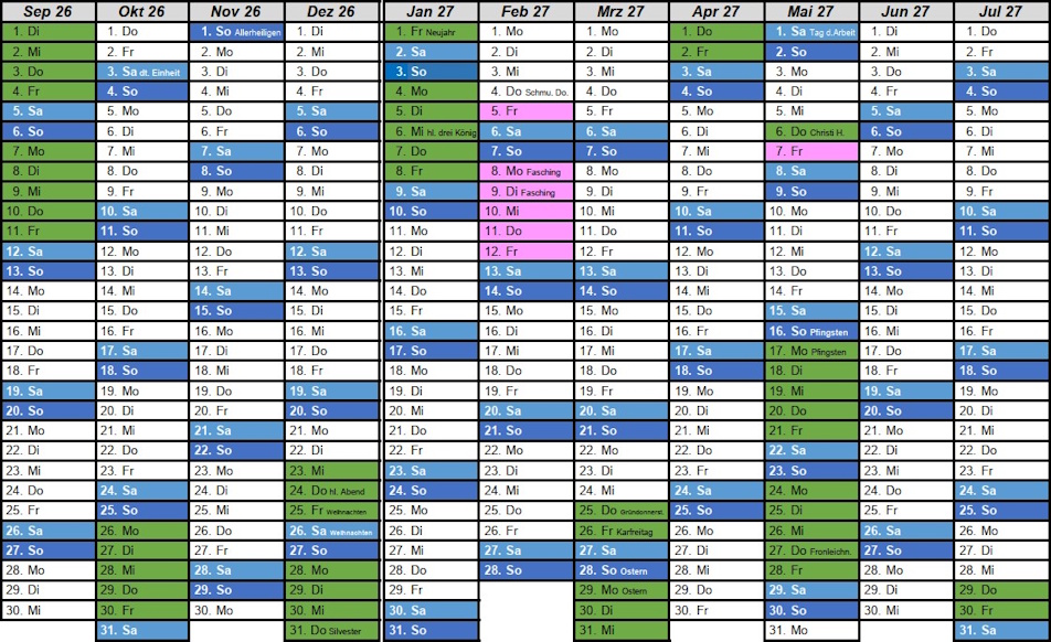 Ferienkalender, Unterrichtszeiten -> Ferienkalender -> Unterrichtszeiten Ferienkalender Schuljahr 2025/2026 Ferienkalender Schuljahr 2026/2027 Unterrichtszeiten