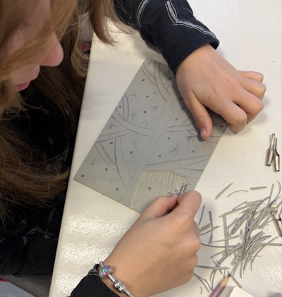 Linolschnitt in Klasse 6